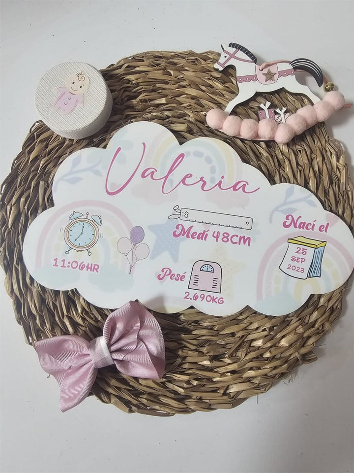 Con su diseño adorable y la impresión a color de los datos del bebé, este nube será la pieza central del cuarto del pequeño.