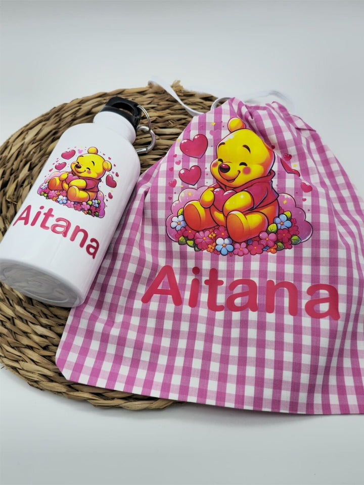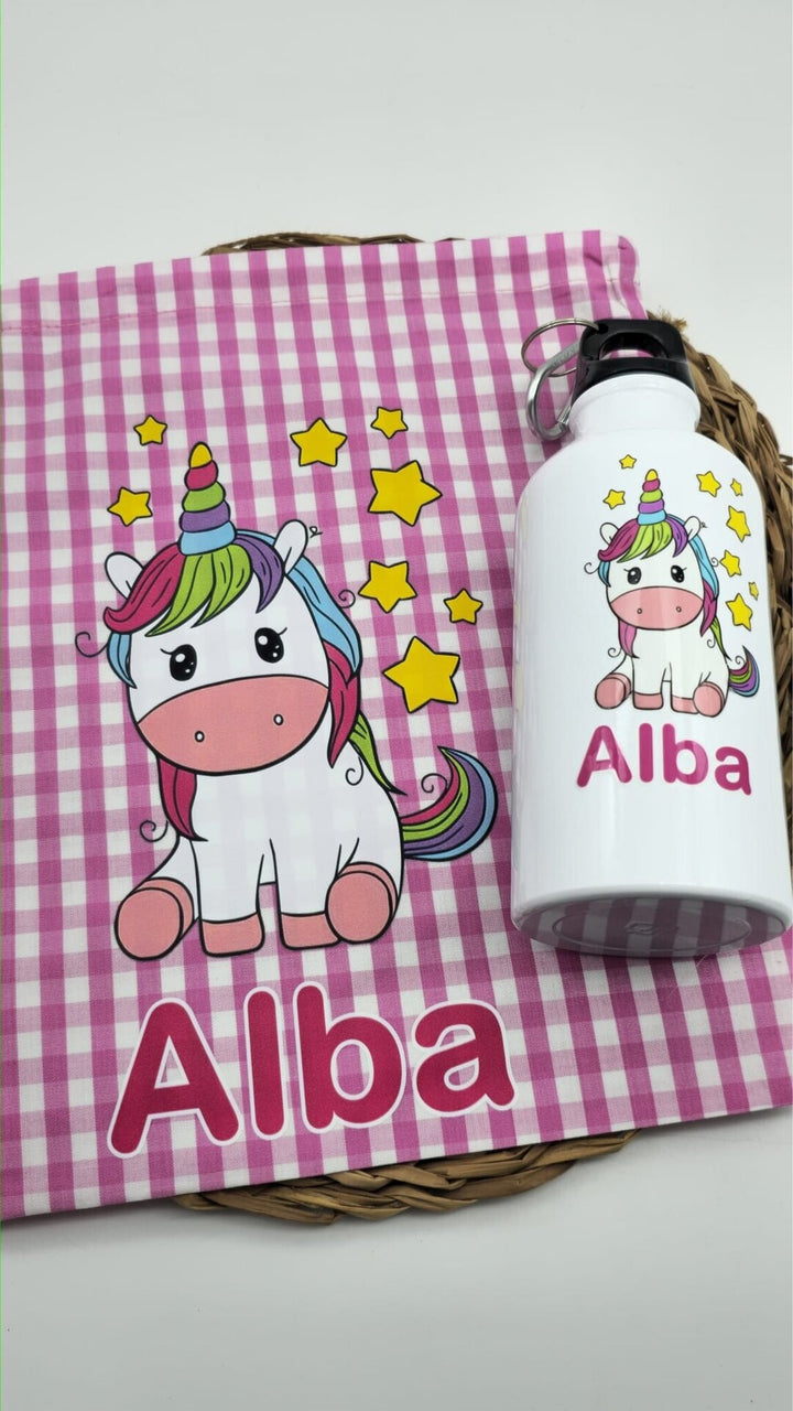 - Una bolsa de merienda 28x24cm: Totalmente personalizada con el dibujo y nombre que tú elijas. Puedes usarla para guardar tu comida, snacks o cualquier otro objeto pequeño que necesites llevar.