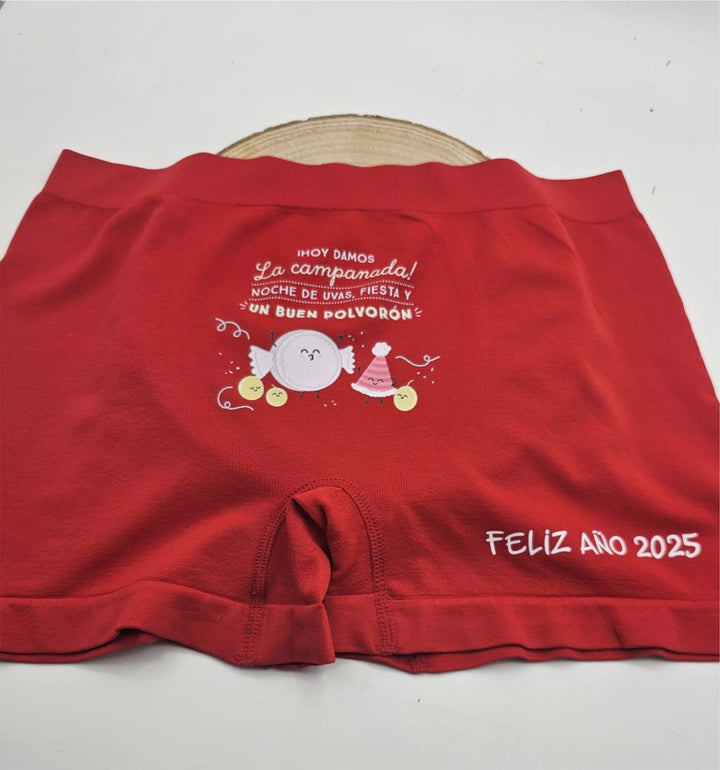 Despide el año marcando tendencia con los boxer "Hoy damos la campanada". Su diseño sin costuras garantiza una comodidad tan ligera que apenas notarás que los llevas puestos. El tejido elástico y transpirable se adapta a tu cuerpo con un ajuste perfecto, mientras que la cintura y perneras con bandas elásticas te ofrecen total libertad de movimiento. Ideales para darle un toque sexy y muy divertido a tus celebraciones.