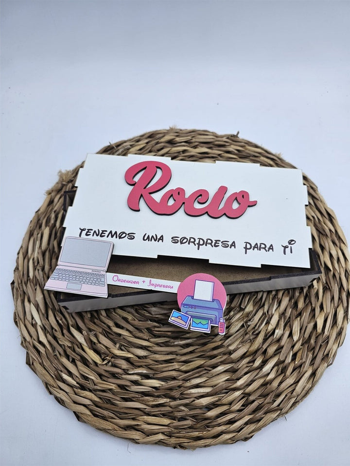 Imagina la emoción en sus ojos al abrir esta hermosa caja, diseñada a tu gusto con una impresión a color en madera. En su interior, encontrarás un mensaje secreto que revela la sorpresa que le espera: un viaje inolvidable, un regalo especial o una aventura única.