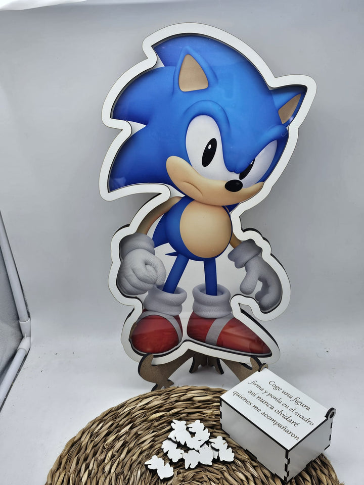 El cuadro de firmas de Sonic es perfecto para tu evento. Tus invitados podrán firmar una ficha y colocarla en el cuadro, creando un recuerdo único y especial. Con un tamaño de 39x23cm, trae 70 fichas para que todos tus seres queridos puedan dejar su huella. Una pieza única para siempre.