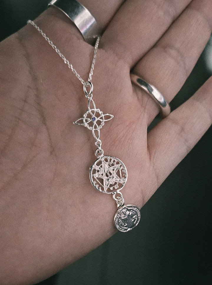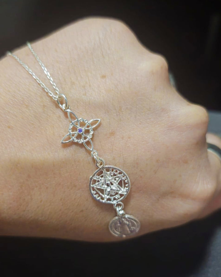 Lleva el nudo de brujas, símbolo celta que atrapa la negatividad y forma un círculo mágico de defensa.