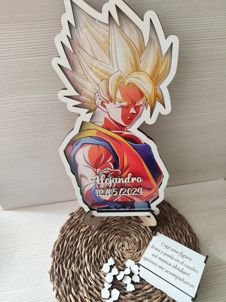 El cuadro de firma goku es perfecto para tu evento. Tus invitados podrán firmar una ficha y colocarla en el cuadro, creando un recuerdo único y especial. Con un tamaño de 20,6x39cm, trae 70 fichas para que todos tus seres queridos puedan dejar su huella. Una pieza única para siempre.