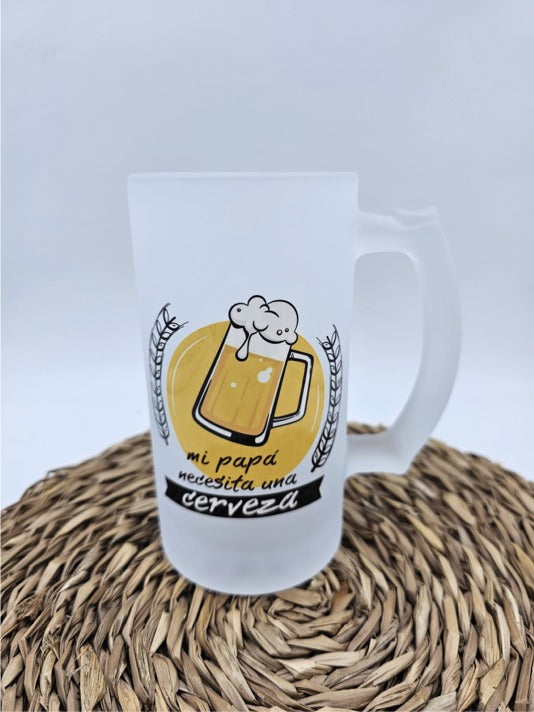 Disfruta de una cerveza fría con esta jarra de 500ml. Su cristal esmerilado y diseño con dtf uvi le dan un toque único. Perfecta para regalar a tu padre en cualquier ocasión. No apto para lavavajillas. ¡Sorprenderá a todos tus sentidos!