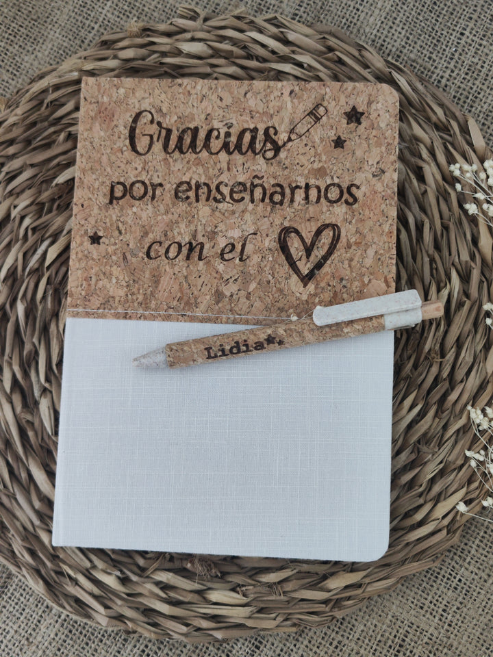 Esta libreta de corcho y bolígrafo personalizado te permite expresar tu agradecimiento a tu profesor de una forma única.