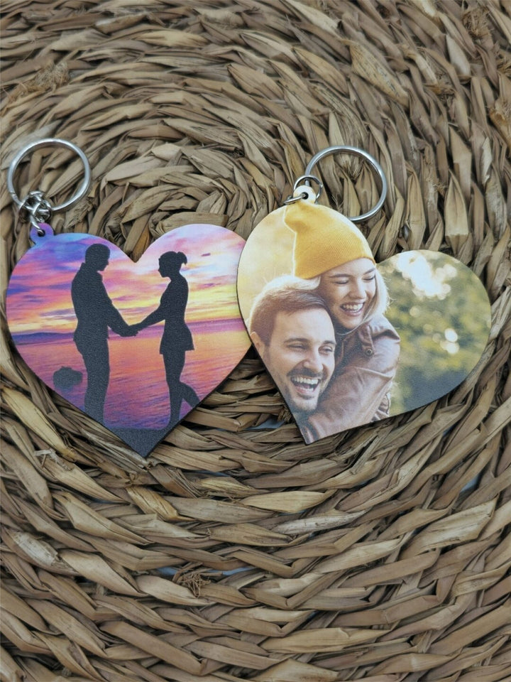 Un detalle romántico y personalizado para San Valentín. Este llavero de madera con forma de corazón está impreso a todo color con la imagen que más te guste.