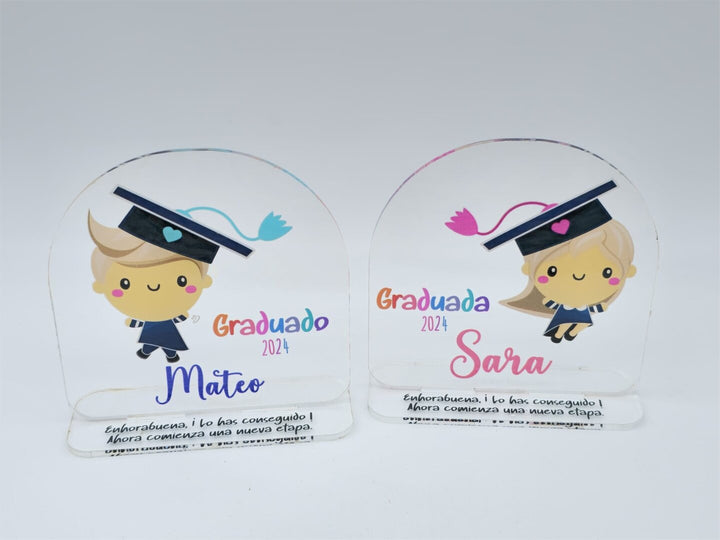 Imagina la carita de tu peque cuando vea su propia placa Con su nombre y promoción, celebrando su graduación como todo un campeón. ¡Es la manera perfecta de recordar este momento tan especial!